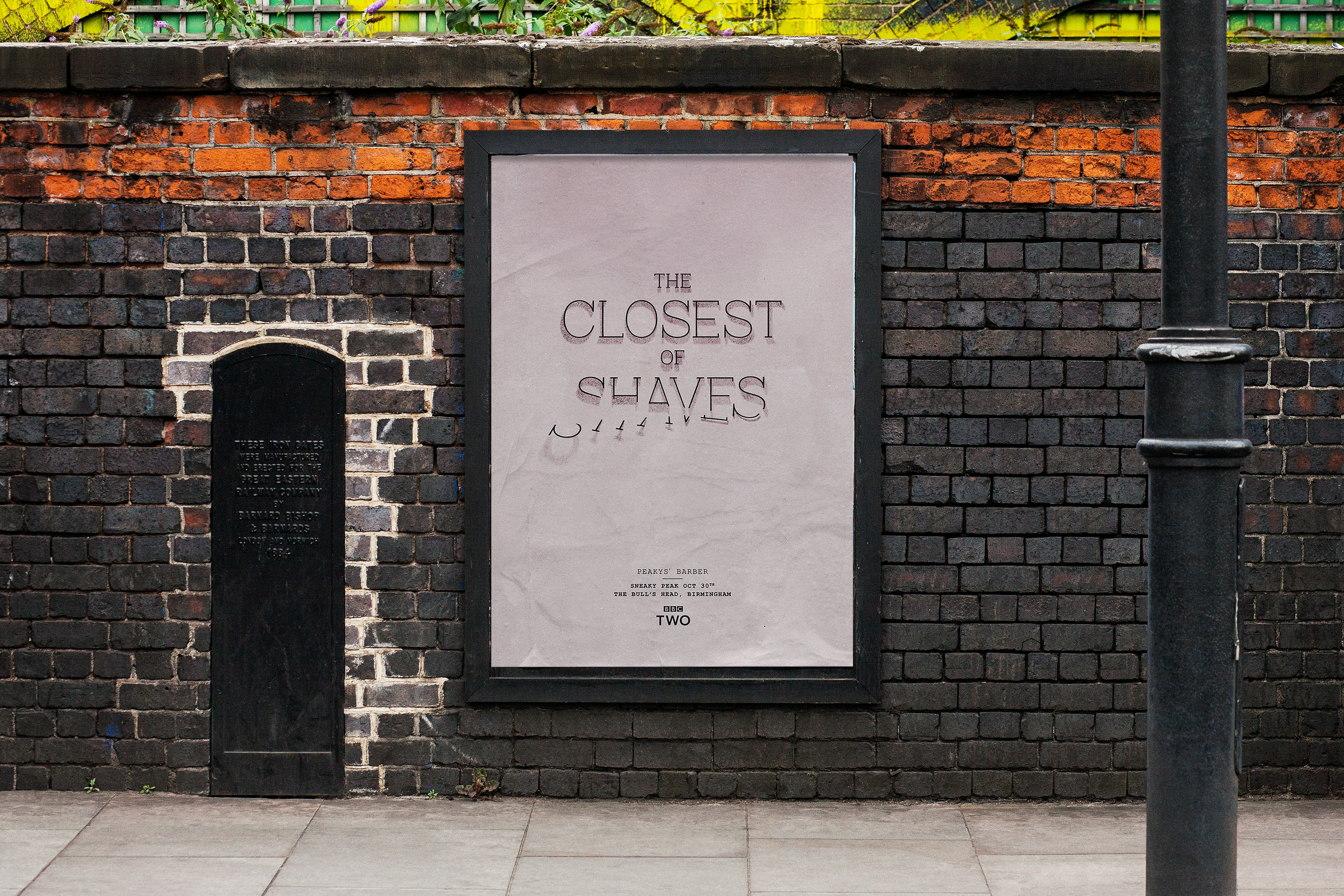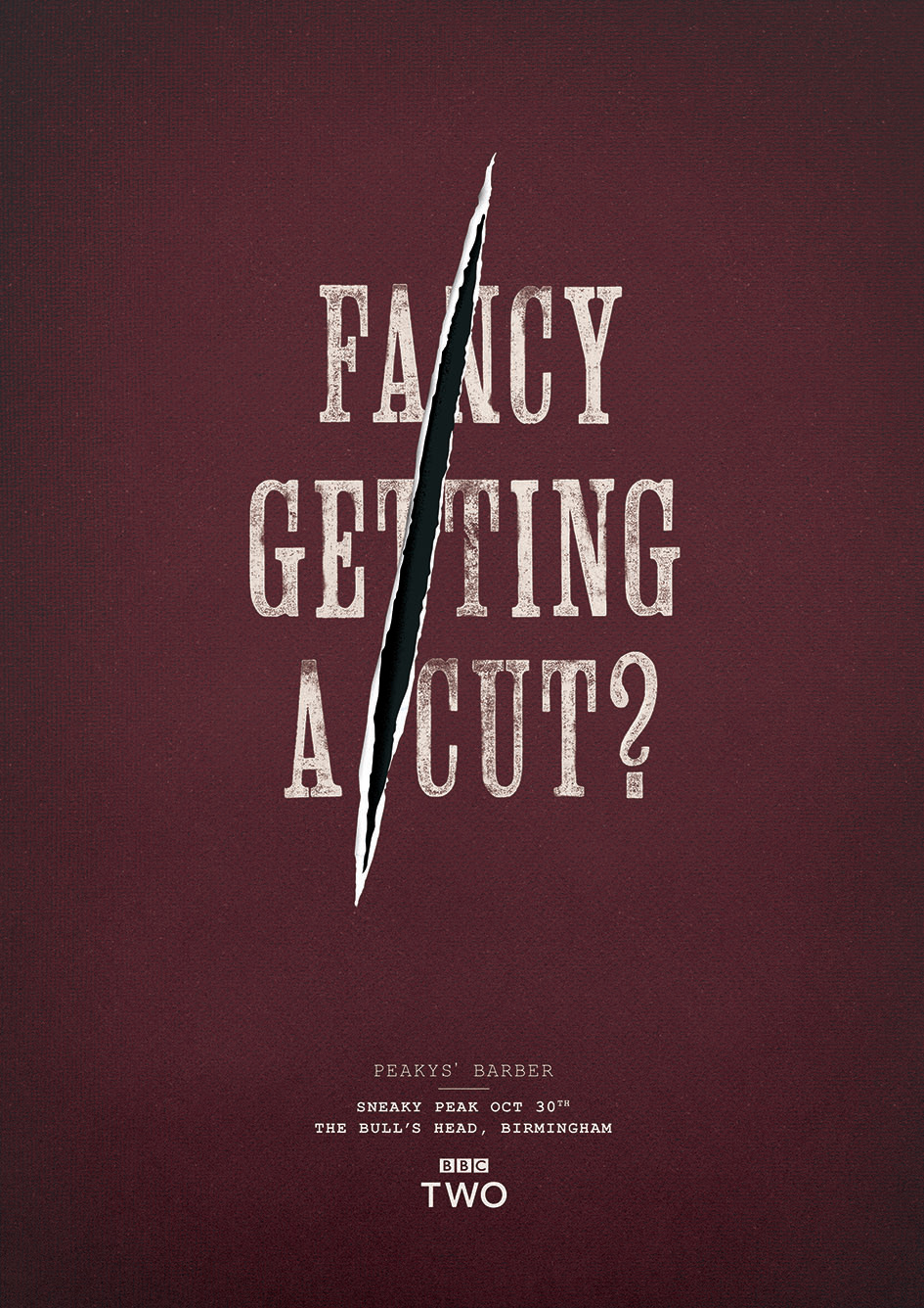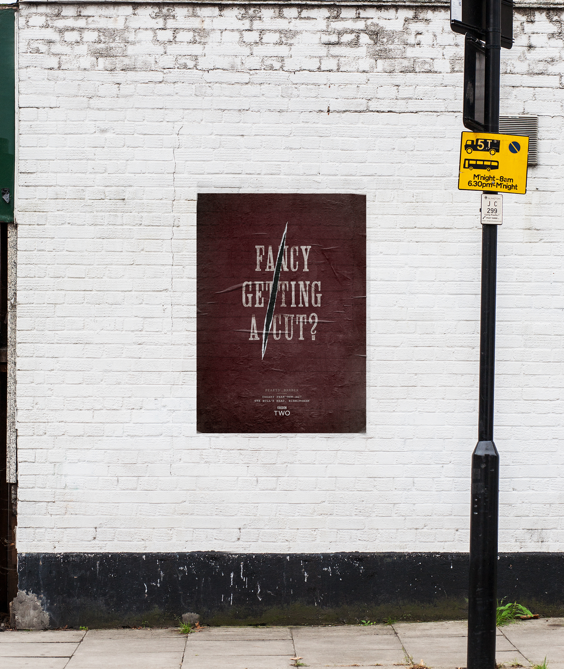 To celebrate the return of Peaky Blinders the BBC held a launch party at a pub-come- hairdressers. These posters were created (among others) to decorate the venue and help give a "peaky" vibe to the venue.